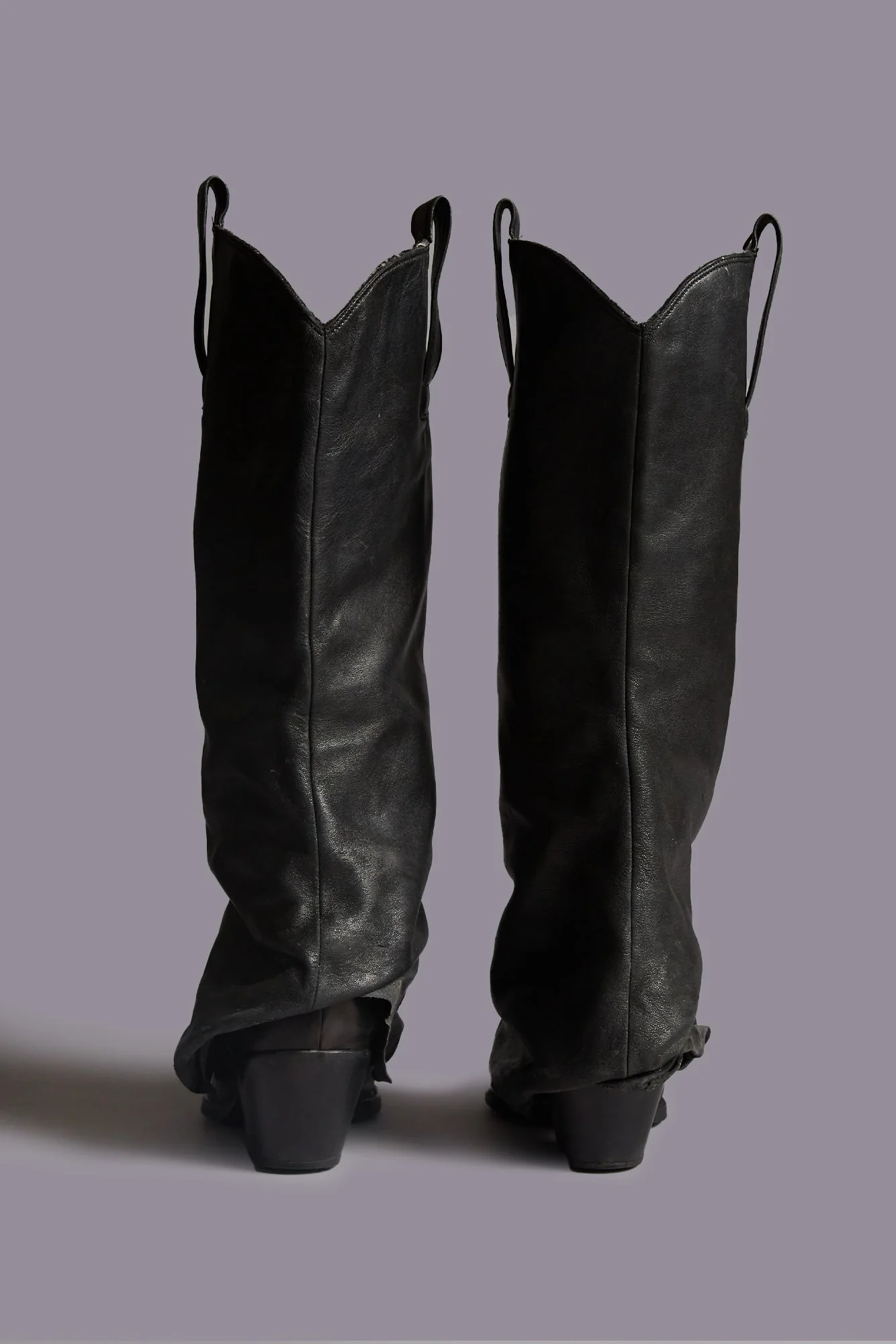 MID COWBOY BOOTS WITH SLEEVE - BLACK LEATHER
